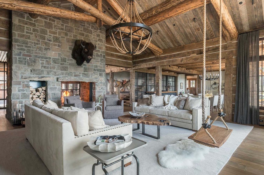 - Lò sưởi là một điểm nhấn quan trọng, mang lại sự ấm áp và là trung tâm của không gian Phong Cách Thiết Kế Rustic.